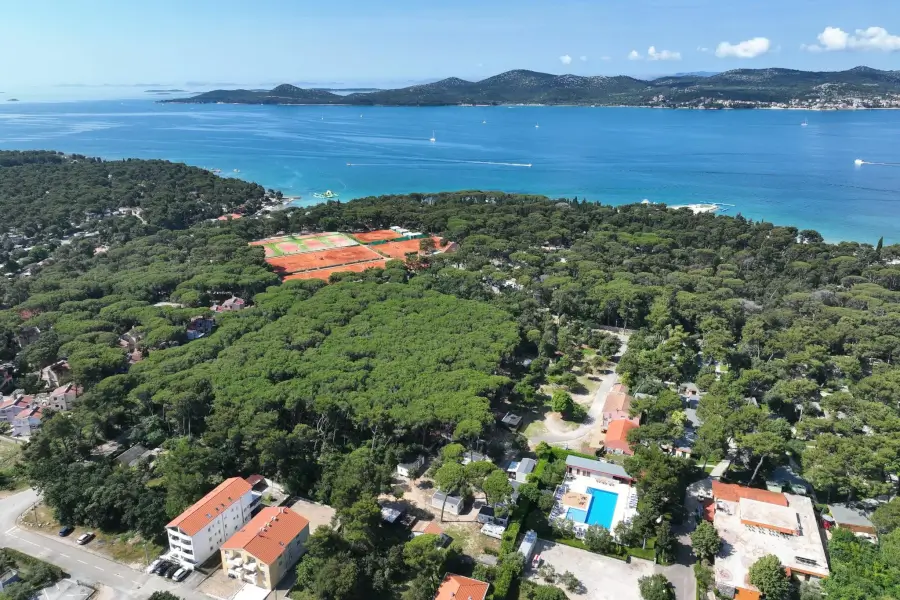 Mediteranska vas se nahaja v San Antoniju na Hrvaškem. Od mestnega središča je oddaljena 500 metrov (približno 6 minut hoje) in 800 metrov od jadranske obale (približno 10 minut hoje). V okolici so peščene plaže, čiste vode, zelenje, kavarne, trgovine in kulturne znamenitosti, do katerih se lahko sprehodite v 5 do 10 minutah. Kombinacija mediteranskega miru in dostopnosti do mesta.