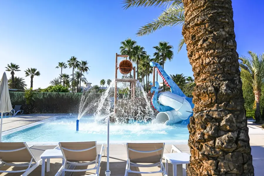 Obdani z bujnimi vrtovi, glavni bazen nudi veliko prostora za plavanje in poležavanje, medtem ko otroški bazen zagotavlja varen in zabaven kotiček za mlajše. Ležalniki in senčniki so priročno nameščeni okoli bazena, kar omogoča udobno sprostitev pod španskim soncem. Ne glede na izbiro – osvežujoča kopel ali mirno sončenje – bazeni ponujajo prijetno doživetje za vse starosti.